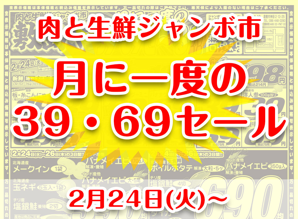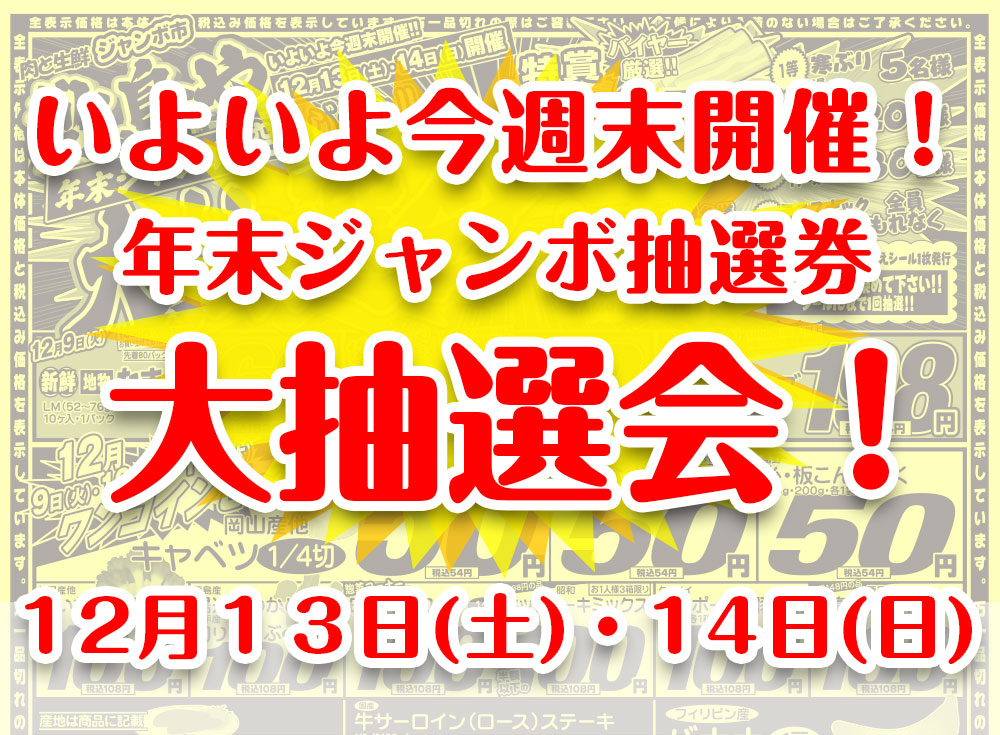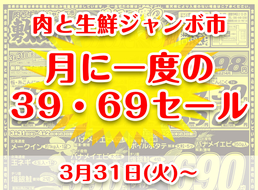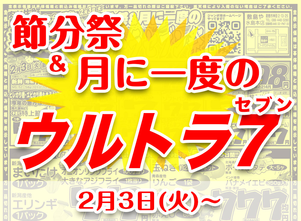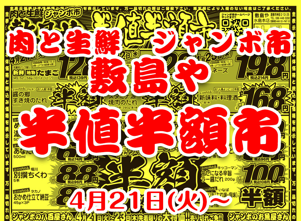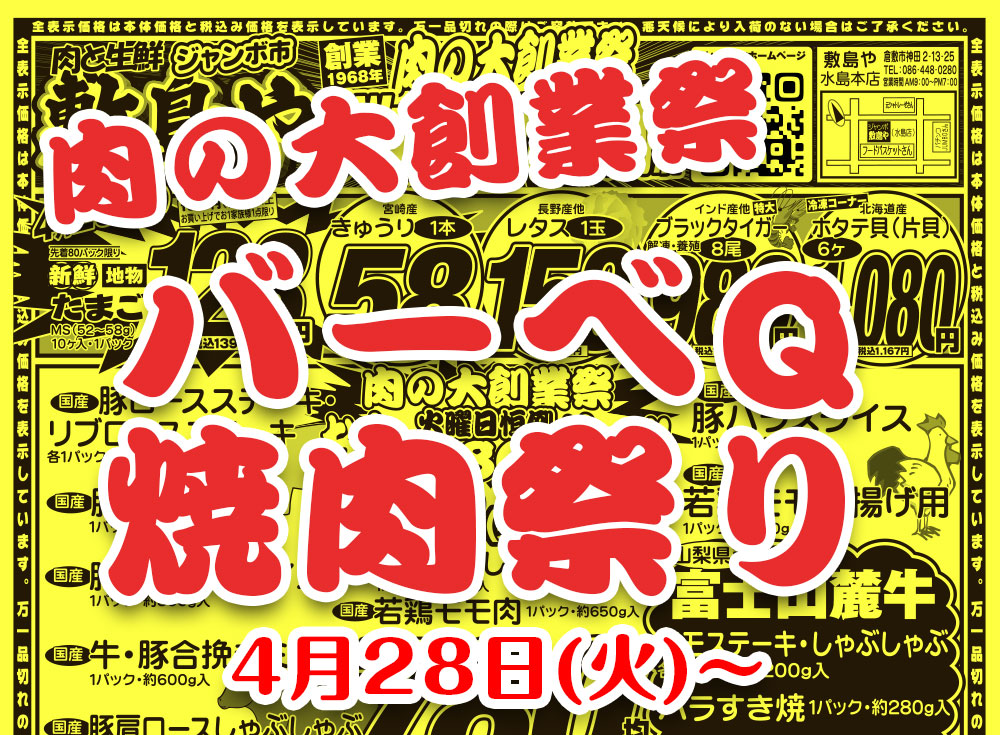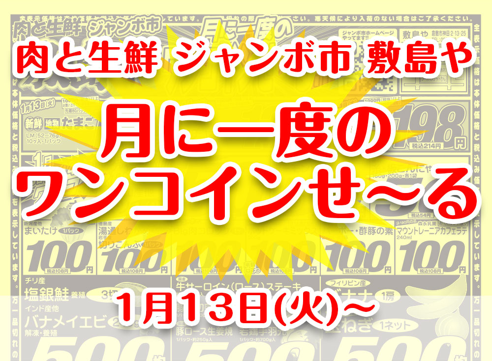 肉🥩と生鮮ジャンボ市 敷島や水島店では【朝市!夕市!ジャンボ市‼】と題して