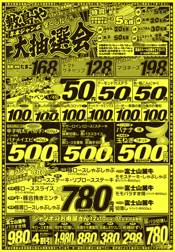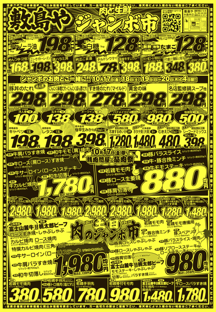 肉🥩と生鮮ジャンボ市 敷島や水島店では【朝市!夕市!ジャンボ市‼】と題して 様々なイベントを開催中‼